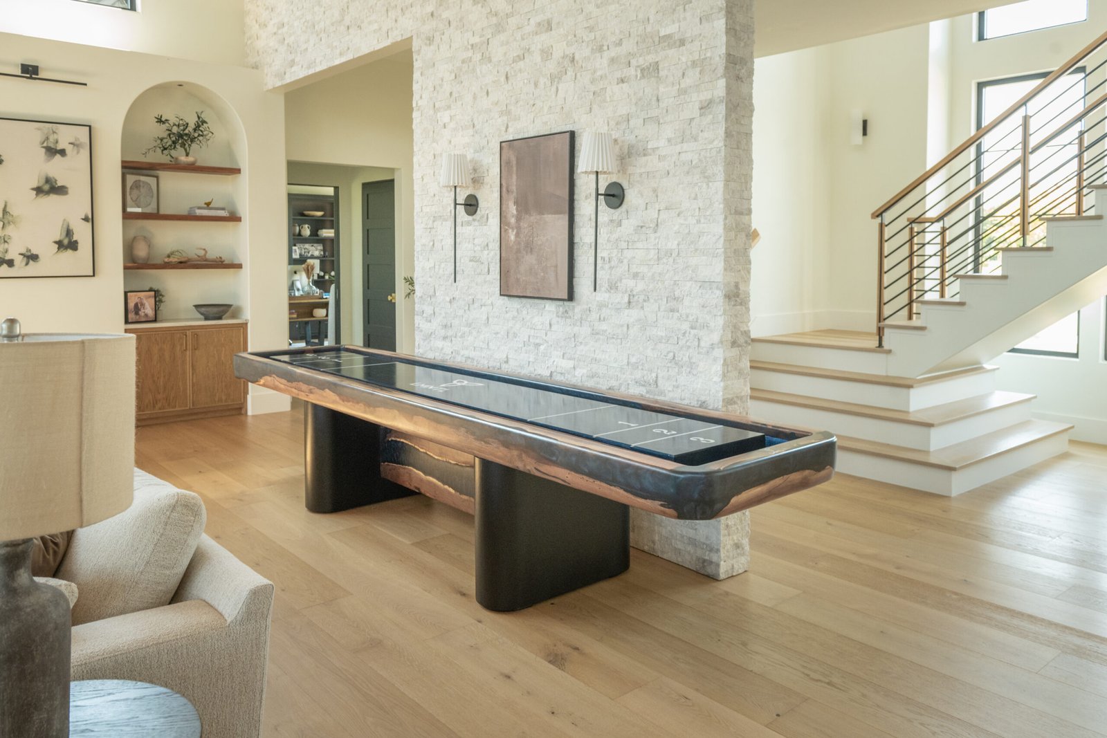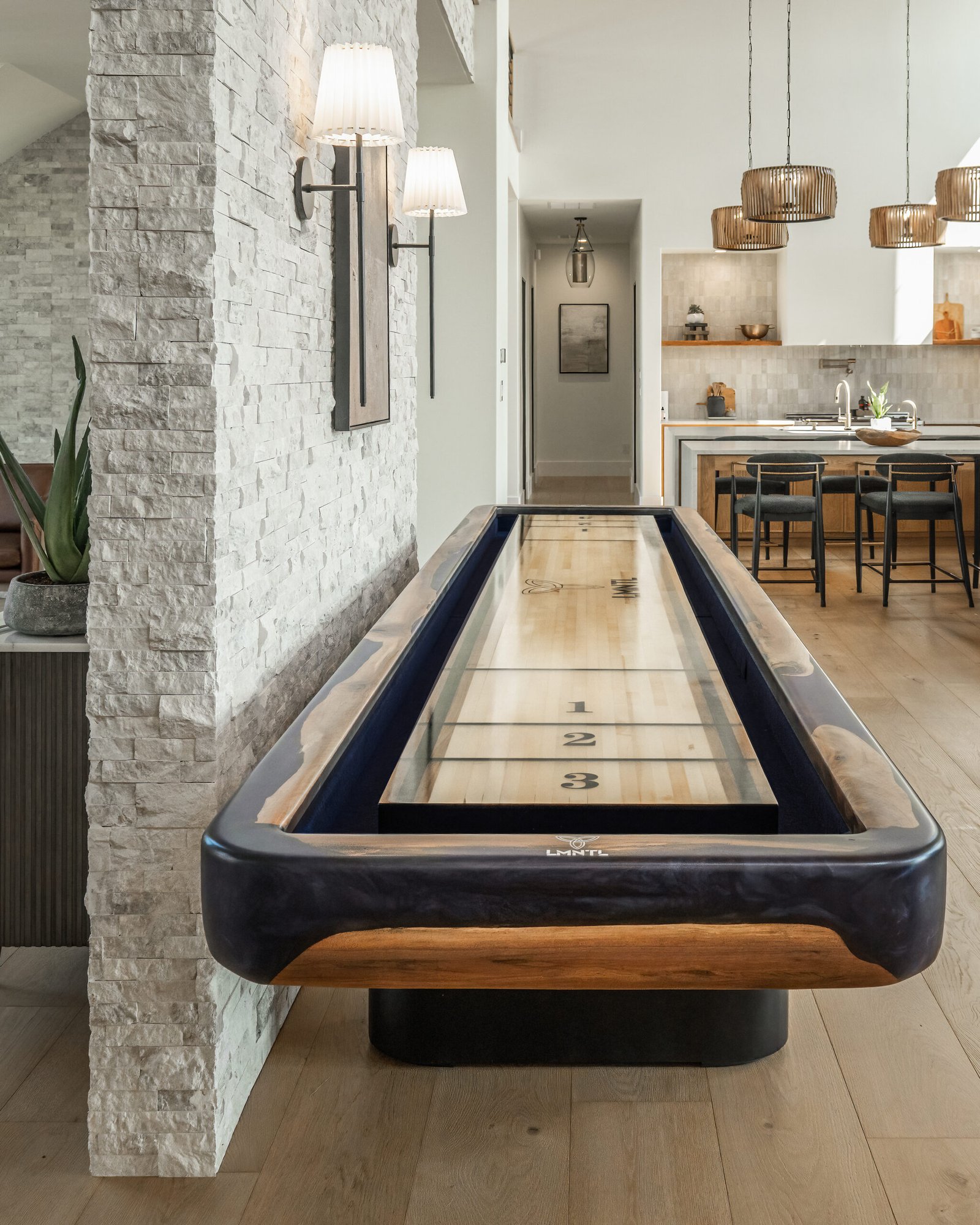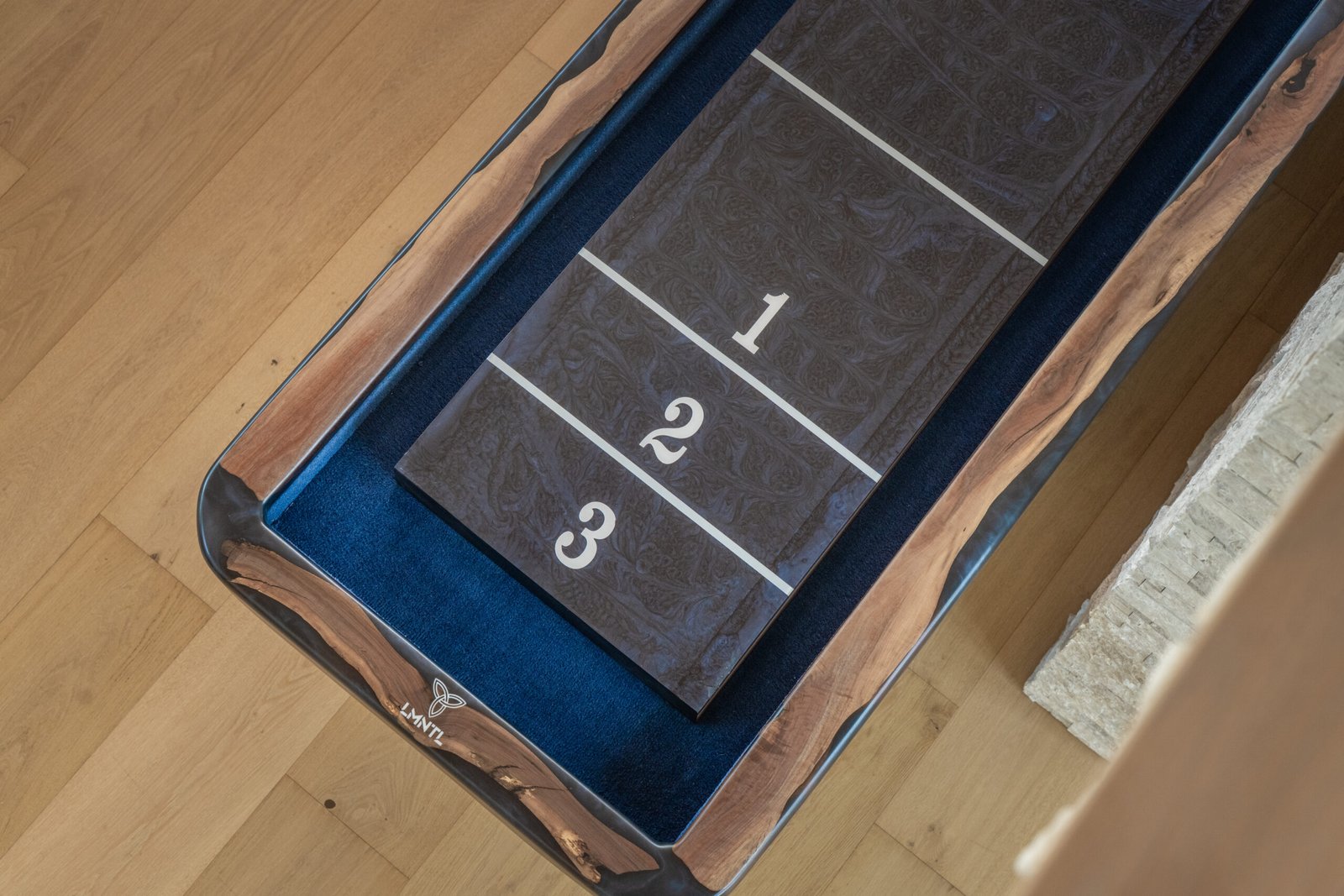 As with every LMNTL creation, each Genesis Shuffleboard Table is custom-built to order. Clients can select their preferred woods, epoxy tones, finishes, and dimensions to create a piece that fits perfectly within their space and style. The result is a shuffleboard that performs at the highest level while standing as a true work of art