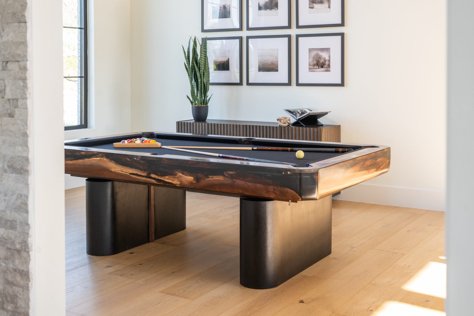 The Genesis Line is the signature expression of LMNTL’s vision for modern craftsmanship. It represents our first fully in-house collection, designed to showcase the artistry, engineering, and imagination that define our brand. Each table in the Genesis family— whether a pool table, shuffleboard, or poker table—is built from the same creative foundation, combining natural materials with advanced fabrication techniques to create functional works of art.